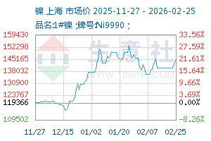 | 品名:1#镍 ;牌号:Ni9990 ; | 国产 | 150500元/吨 | 150500 | 0 | 2026-02-25 | |